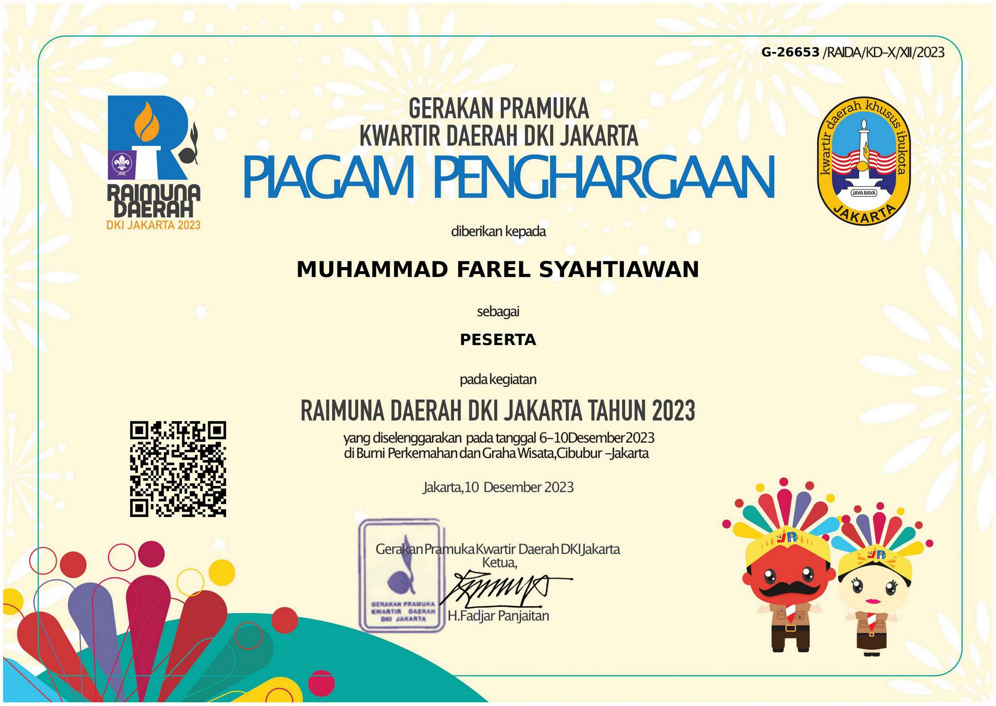 Halo! Saya Muhammad Farel Syahtiawan, biasa dipanggil Farel atau Rel. Lahir pada 2 Juli 2007 di Jakarta, saat ini saya bersekolah di SMAN 80 Jakarta, kelas X5 (10-5). Saya memiliki minat yang mendalam dalam teknologi, terutama dalam bidang pemrograman.
